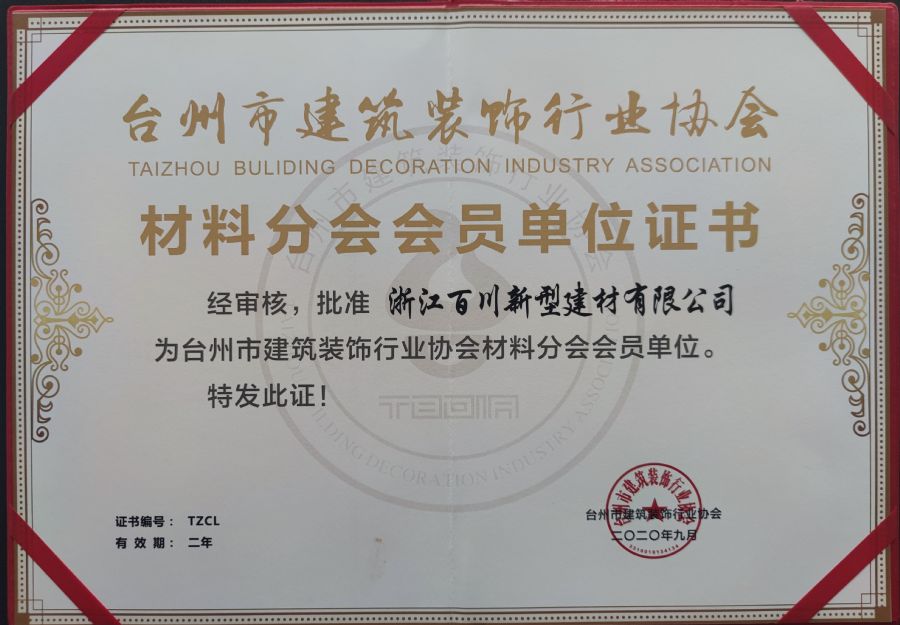 臺州市建筑裝飾行業(yè)協(xié)會證書